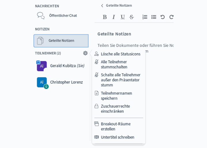 In the room settings, you can structure the meeting in advance. You can determine which options are available to participants.