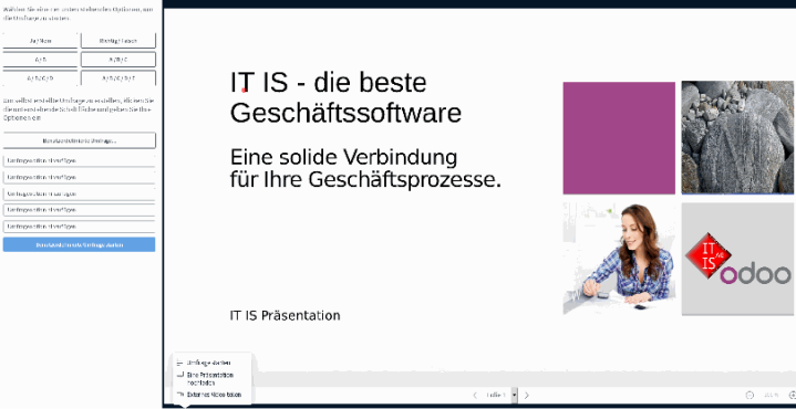 In the meeting rooms, the moderator can also define surveys. The survey results can be published for everyone to see afterward.